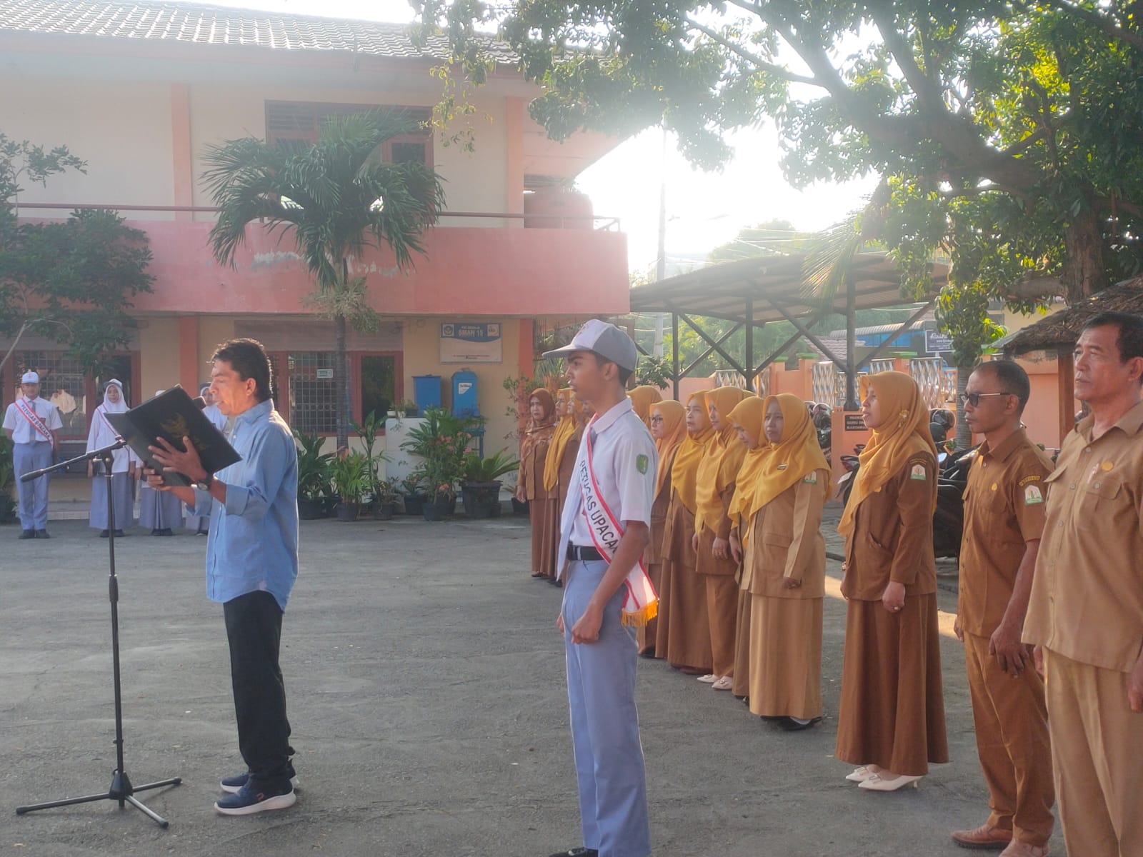 BANDAPOS | SMA Negeri 15 Adidarma Banda Aceh melaksanakan upacara bendera rutin setiap hari Senin dengan penuh khidmat di lapangan sekolah. Upacara kali ini terasa istimewa karena menghadirkan pembina upacara dari kalangan alumni, yaitu Maimun A. Hamid, S.Ag, alumni SMA Adidarma Banda Aceh angkatan 1993.