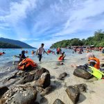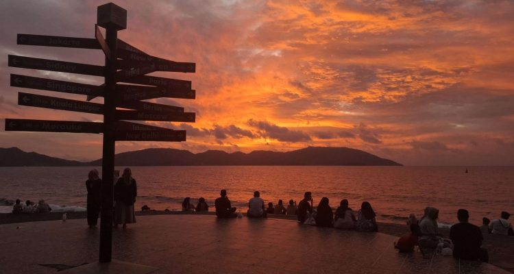 Sejumlah wisatawan mancanegara menikmati suasana dermaga Teupin Layee, Iboih, Sabang yang kian
