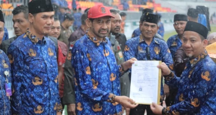 BANDAPOS | Gubernur Aceh Muzakir Manaf menyerahkan Surat Keputusan (SK) pengangkatan Pegawai